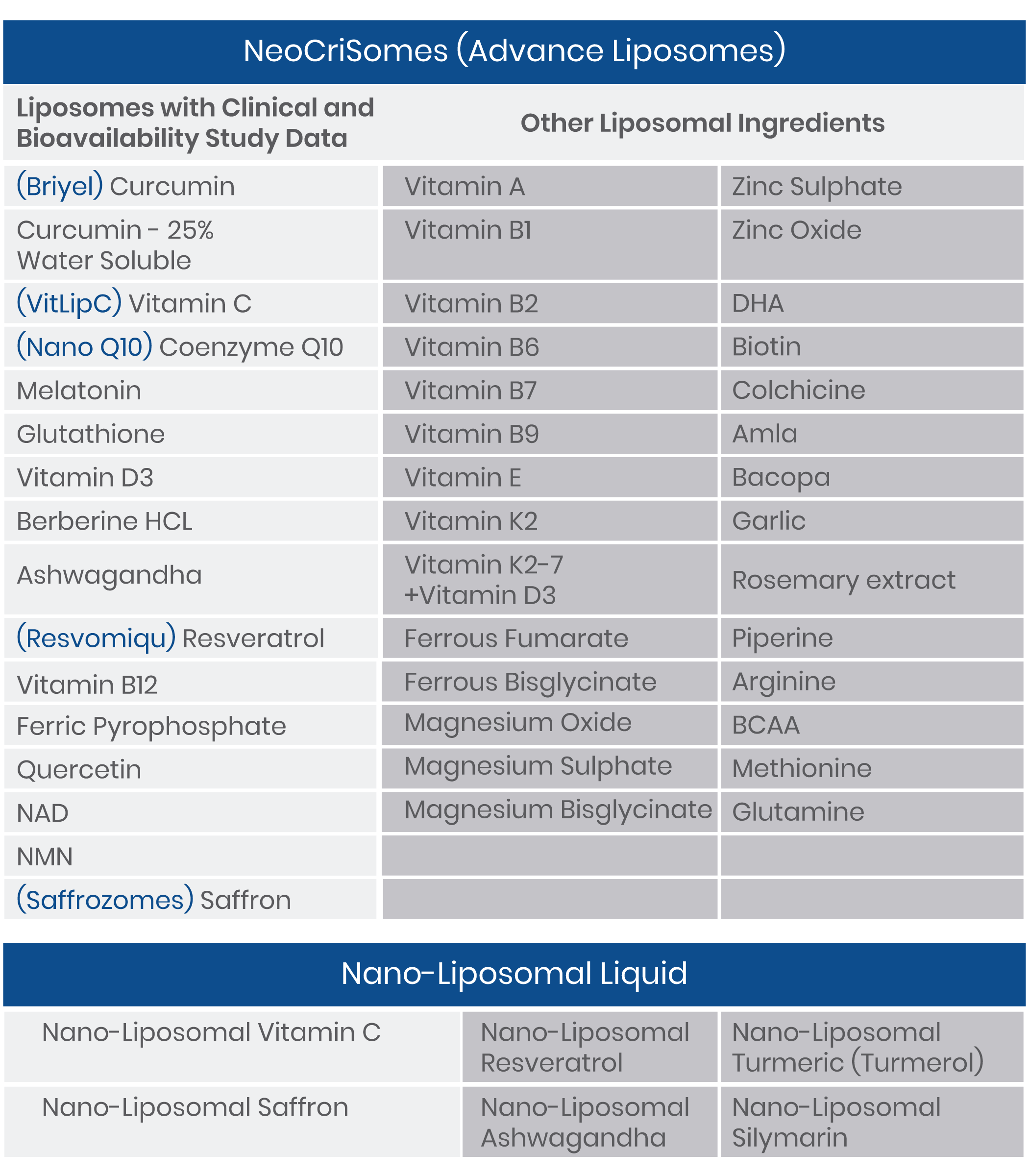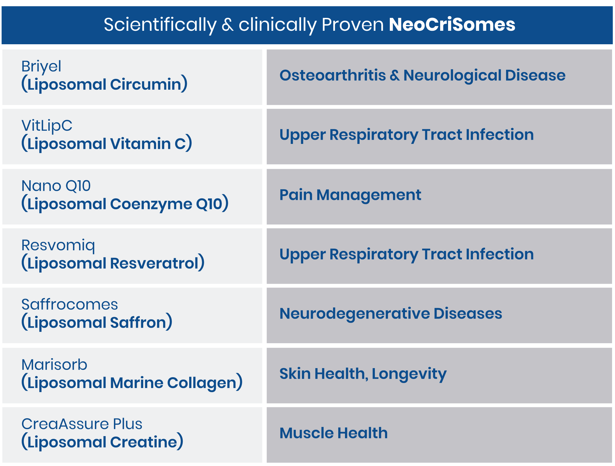 NeoCriSome™ is a next-generation proprietary delivery platform that combines advanced liposomal technology with our Advanced Molecular Microstructuring Complex (AMMC™).